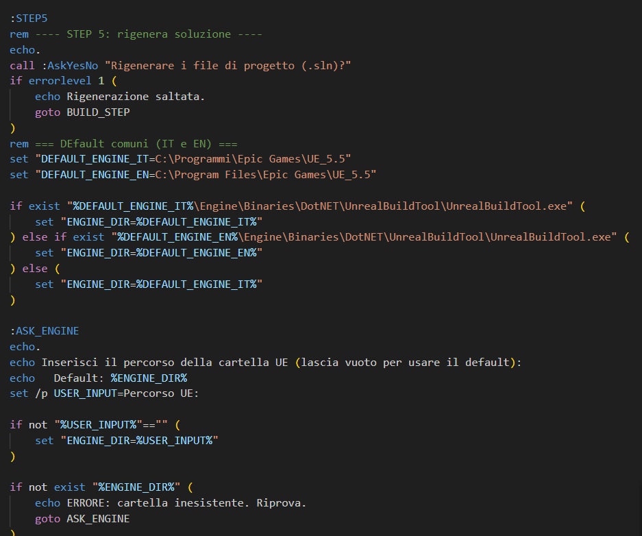 - Robust Path Handling: The script features a simple confirmation and verification loop, allowing it to correctly identify the project folder and engine path after minimal initial setup.